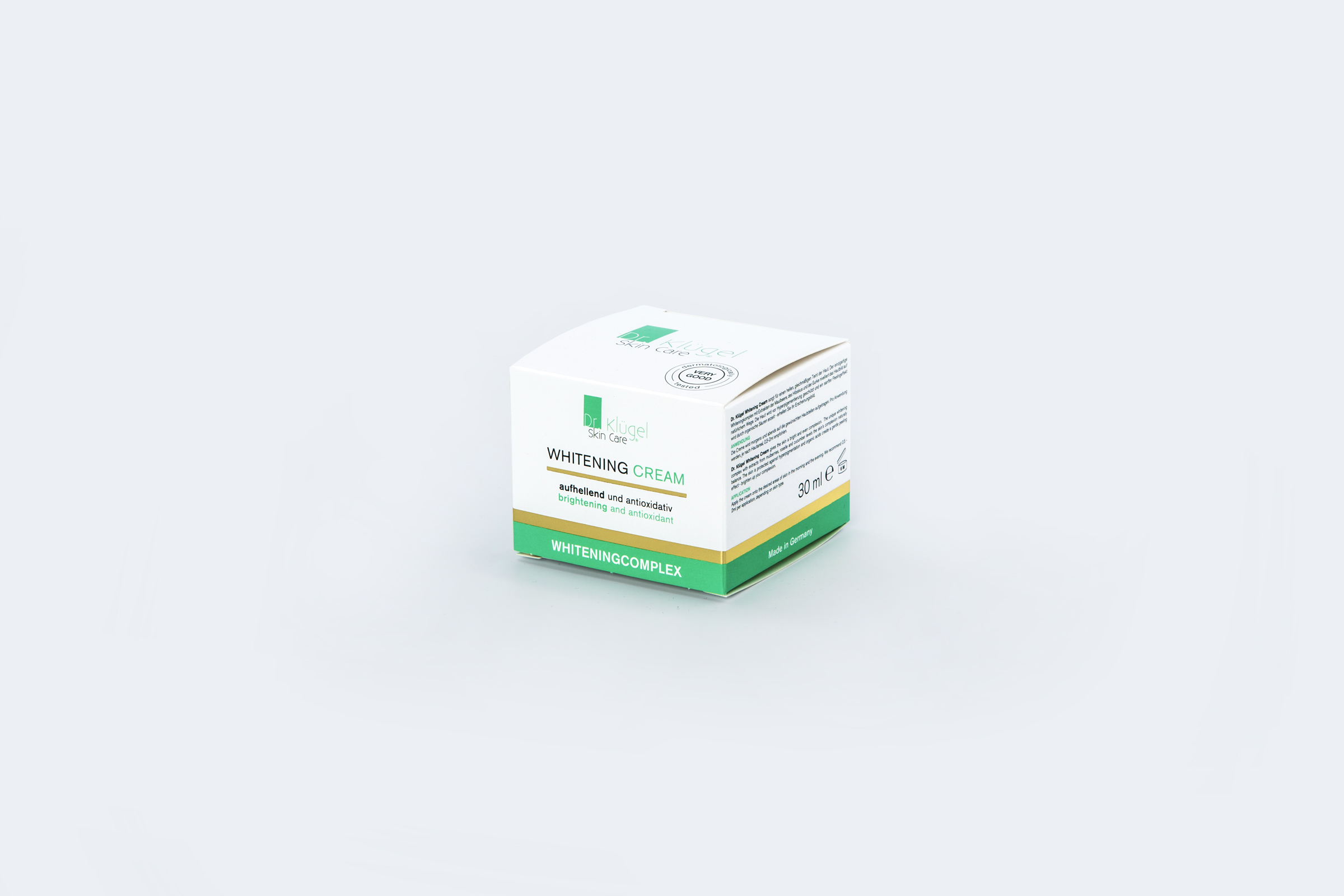 Dr. Klügel Whitening Cream sorgt für einen hellen, gleichmäßigen Teint der Haut. Der einzigartige Whiteningkomplex mit Extrakten der Maulbeere, des Hibiskus und der Gurke nivelliert das Hautbild auf natürlichem Wege. Die Haut wird vor Hyperpigementierung geschützt und ein sanfter Peelingeffekt wird durch organische Säuren erzielt - erhellen Sie ihr Erscheinungsbild.