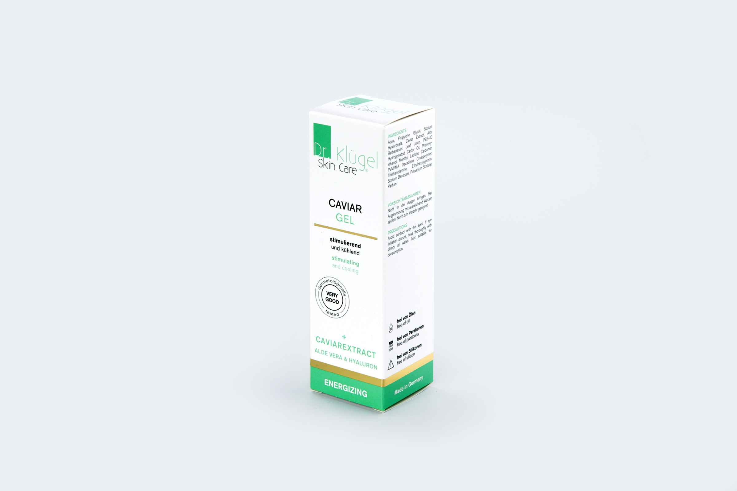 Dr. Klügel Caviar Gel helps to revitalise and stimulate stressed skin. The high-quality caviar extract, in association with aloe vera and hyalouronic acid, relax the skin and makes it appear firm. It improves the skin’s cellular metabolism and the cooling ingredient provides intensive refreshment - give your face a pleasant break.